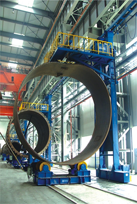 平臺式焊接操作機為單軌行走、平臺可升降式操作機,安裝與廠房靠墻位置;通過天軌與地軌進行定位和導向行走,該類機型由于能大范圍的為用戶節約廠房空間,已經在大型容器廠家及其它大筒體工價單位所青睞。