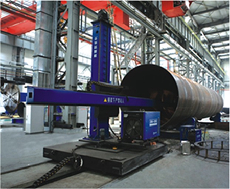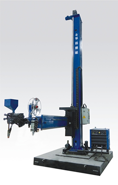 廣泛用于大型筒體工件、結(jié)構(gòu)件的自動(dòng)焊接加工,是保障焊接質(zhì)量、提高生產(chǎn)效能、改進(jìn)工作環(huán)境的自動(dòng)化效率高焊接輔機(jī)。本機(jī)通過橫臂伸縮帶動(dòng)機(jī)頭(焊槍)行走以實(shí)現(xiàn)長(zhǎng)直焊縫的自動(dòng)焊接,也可通過橫臂伸縮、升降將機(jī)頭(焊槍)移動(dòng)至待焊位置后固定,再利用 變位機(jī)械轉(zhuǎn)動(dòng)工件完成環(huán)形焊縫的自動(dòng)焊接。常與滾輪架、變位機(jī)、焊機(jī)等設(shè)備配套使用,組成自動(dòng)焊接中心;也可配置其它作業(yè)機(jī)頭,進(jìn)行相應(yīng)自動(dòng)化作業(yè)。