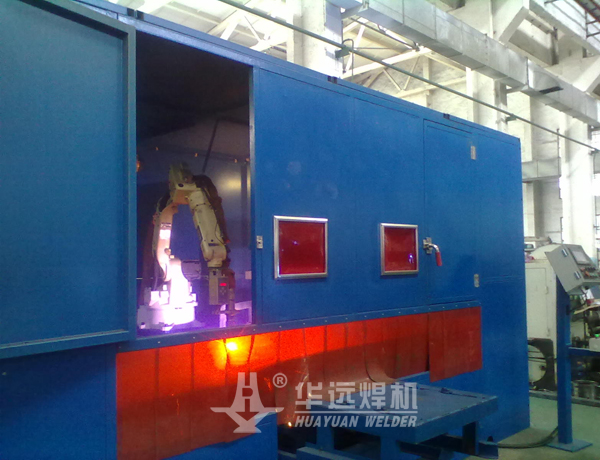 布局方式:單工位布局,機器人座式安裝,四周設置全封閉式防護罩,防止無關人員在工作時間進入焊接區域。