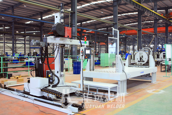 后支腿立焊專機主要由工件支撐架、焊接操作機、跟蹤探頭、焊接電源及檢測、控制系統等部件組成。配置電動行走的精密型焊接操作機,可實現焊槍三軸方向上的調整。