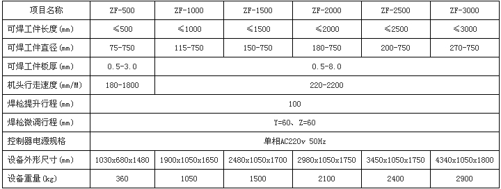 ZF系列縱縫焊接專機主要用于薄壁筒體以及平板拼接的縱縫自動焊接,焊接工藝可采TIG/MIG/MAG/PWA/SAW等多種方式,適用于碳鋼、不銹鋼、鋁及鋁合金、鈦合金等材料的焊接,廣泛應用于航空航天、汽車零配件、摩托車、家電、壓力容器以及食品機械等行業。設備采用氣動琴鍵壓緊結構,保證工件的均勻壓緊,芯軸可選水冷以及焊縫背氣保護,減少焊接變形;控制系統采用PLC+人性化觸摸式操作界面,有效保證焊接質量,操作簡單可靠。